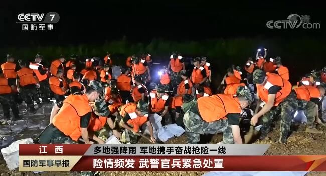 武警江西总队机动支队副支队长 宋桓:经过官兵连续近5个小时的奋战,我们消耗了砂石450余方,装填沙袋余个,目前险情得到了有效控制。